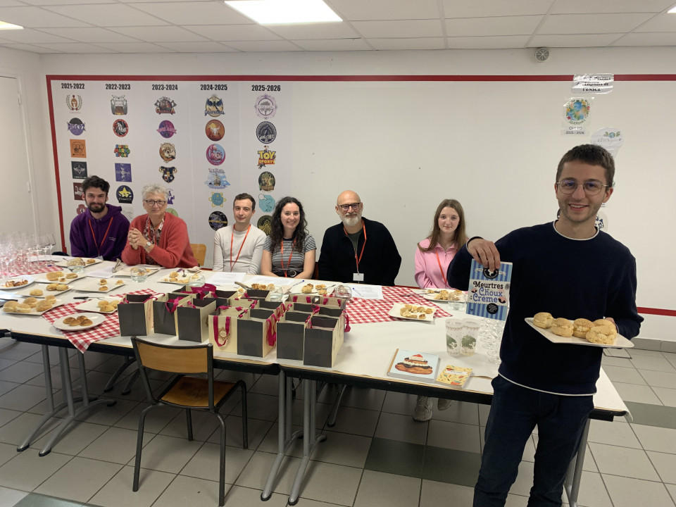 Pour conclure la pause du midi, un concours de choux a été organisé sous la dynamique de Jean-Patrick BLIN (promotion 1989 et organisateur du Championnat de France du Dessert). Deux types de choux étaient évalués : choux à la crème traditionnelle et choux sucrés à la garniture libre. Il y avait 4 équipes : les Alumni (4 personnes), les 1A (8 personnes), le BDE (4 personnes) et Vincent EISLER (2A). Vincent, passionné de pâtisserie, a remporté les deux catégories haut la main et reçu le livre de son choix parmi une sélection préparée par Jean-Patrick et une donation de 200€ à reverser à l’association étudiante de son choix. Et comme le plus important, c’est de participer, l’association a remis avec plaisir à chaque candidat un paquet de gaufres à la Vanille de l’institution Lilloise Meert.