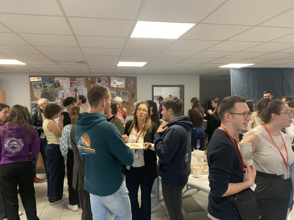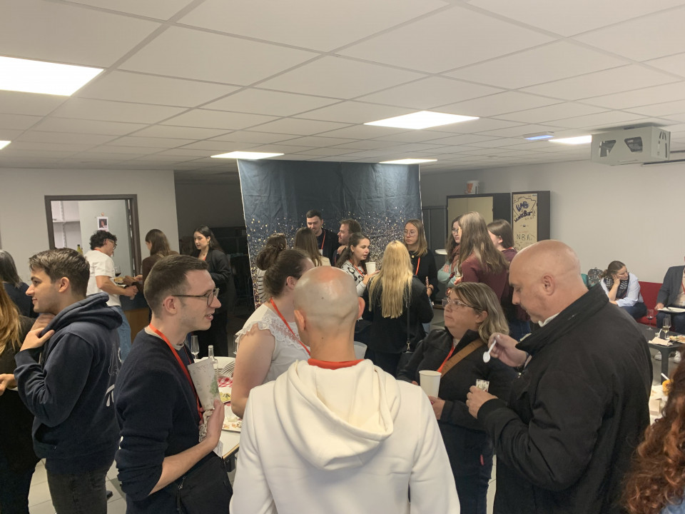 Le déjeuner, préparé par les élèves, s’est déroulé au foyer de l’école. Les crudités, planches et multiples assortiments froids et chauds étaient accompagnés du champagne de Pierre FLORENT (promotion 2001, https://www.linkedin.com/in/pierre-florent/) et du vin rouge de Perrine LHOUMEAU SAMSERÀ (promotion 2004, https://www.linkedin.com/in/psamsera/). Le repas s’est déroulé dans la bonne humeur et a permis de nombreux échanges entre élèves et anciens élèves.