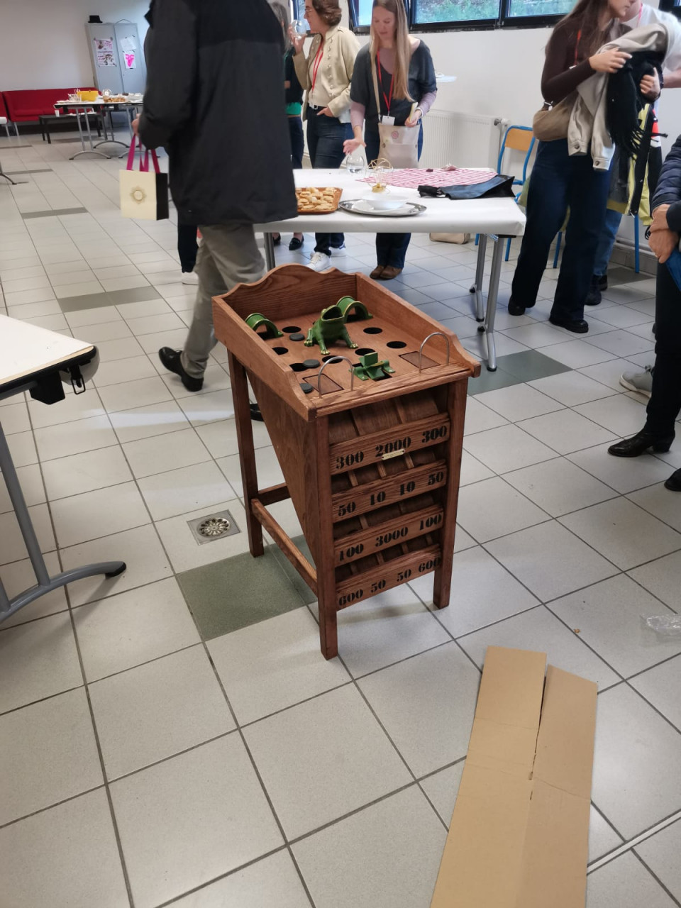 Afin de marquer le week-end sur le long terme, montrer l’attachement des diplômés à l’école et aux liens avec les étudiants, l’association a offert aux étudiants un jeu traditionnel d’estaminet pour le foyer : La Grenouille. Evidemment, nous avions confirmé avant avec eux qu’un tel cadeau leur ferait plaisir.